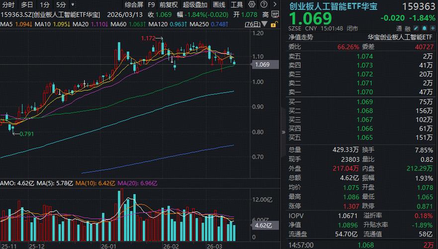 周五(3月13日),IDC算力租赁概念领跌AI赛道,创业板人工智能全天低迷,日线三连阴。其中,汉得信息跌超10%,奥飞数据、首都在线、东方国信、光环新网等多股跌超7%。但光模块CPO龙头 逆市活跃,新易盛逆市大涨4%,中际旭创涨超1%。 热门ETF方面,重仓光模块龙头的创业板人工智能ETF(159363)场内收跌1.84%日线三连阴,缩量成交4.62亿元,资金进场抢筹5200万份。 ...