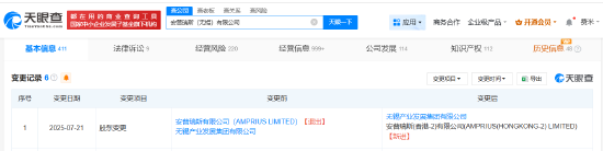 据天眼查显示,近日,安普瑞斯(无锡)有限公司发生工商变更,原股东安普瑞斯有限公司(AMPRIUS LIMITED)退出,新增安普瑞斯(香港-2)有限公司(AMPRIUS(HONGKONG-2) LIMITED)为股东,徐子福担任董事职位,同时多位高管发生变更。