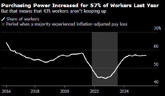 根据周四发布的报告,Indeed工资追踪指标显示美国整体薪资增速跑赢通胀,但这种优势已缩小至过去12个月以来最小。截至6月,大约六成就业者的薪资增长快于生活成本上涨速度,意味着剩余四成人的收入已跟不上通胀。